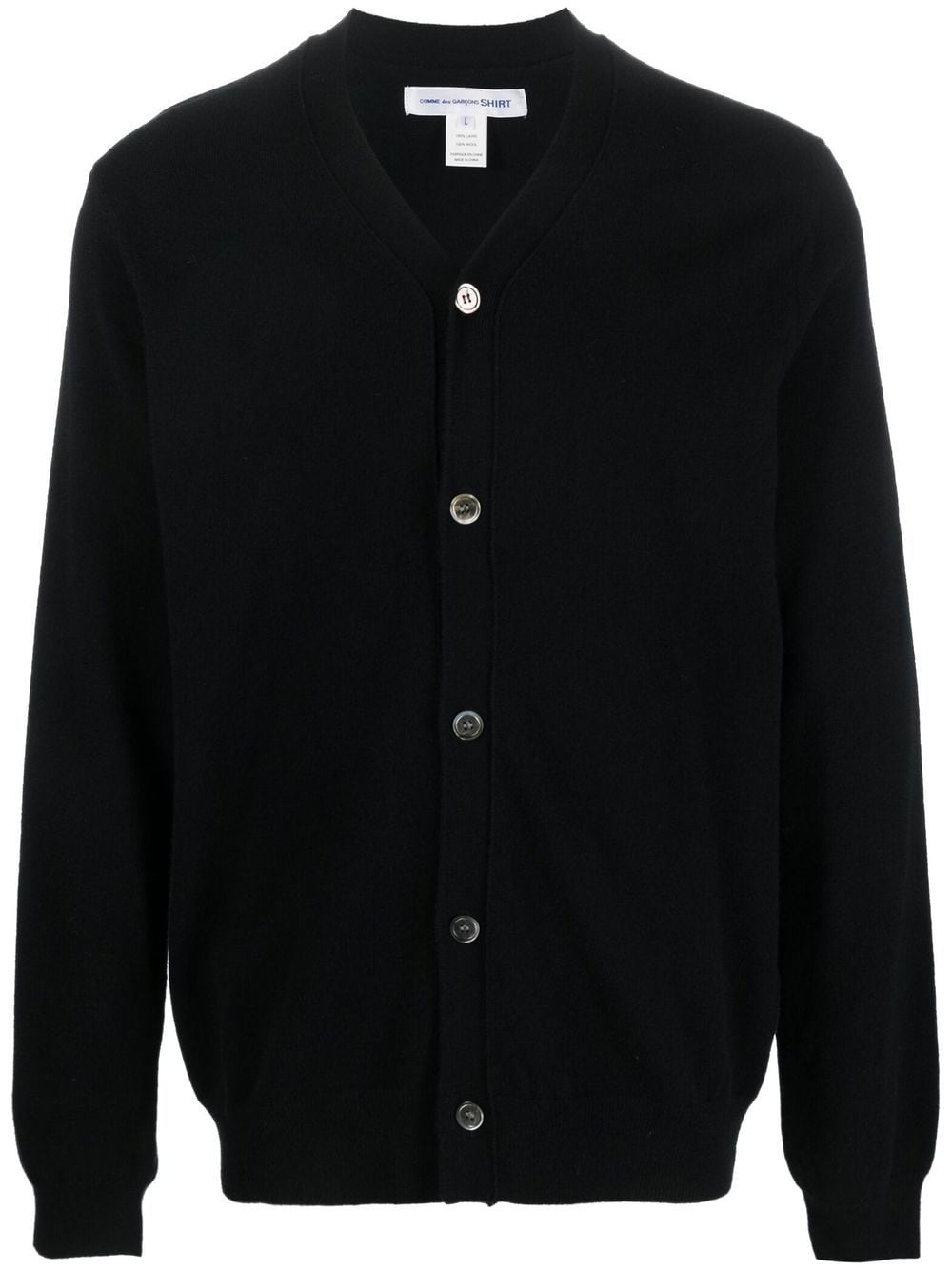 V-neck wool cardigan black wool piped-trim detailing V-neck front button fastening long sleeves straight hem Imported Composition Wool 100% SIZE & FIT Model measurements Height 6 ft 2 in(1.87 m) Bust/Chest 36.41 in(92.5 cm) Hips 37 in(94 cm) Waist 29.52 in(75 cm) FittingInformation This piece fits true to size. We recommend you get your regular size Cut for a relaxed fit Made with a mid-weight fabric