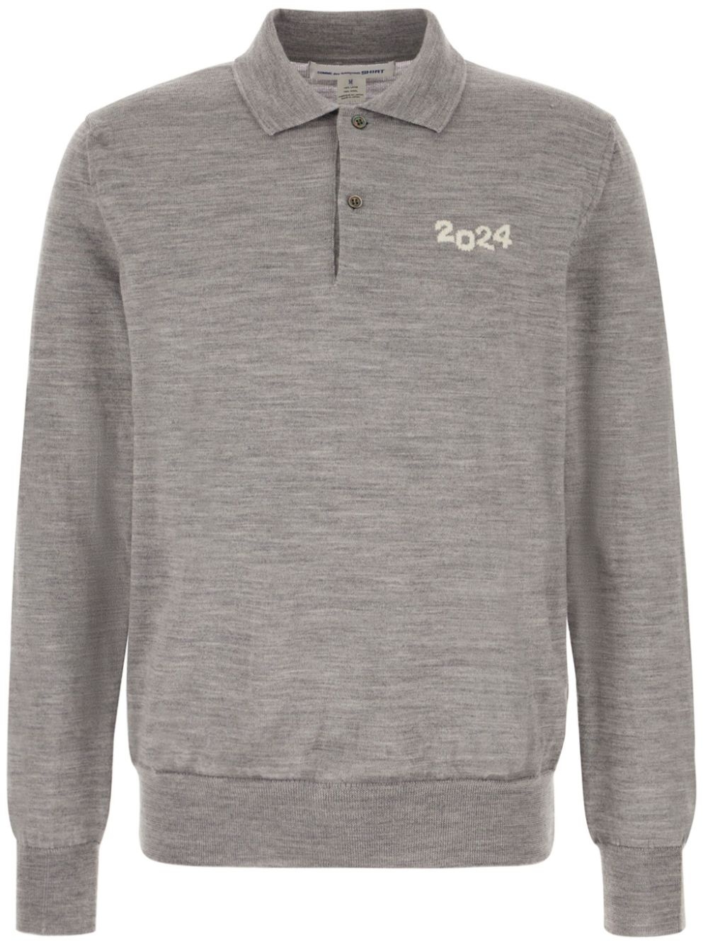 wool polo shirt Highlights - Grey - Wool - Melange effect - Polo collar - Year printed to the chest - Ribbed cuffs and hem - Long sleeves Imported Composition Wool 100%
