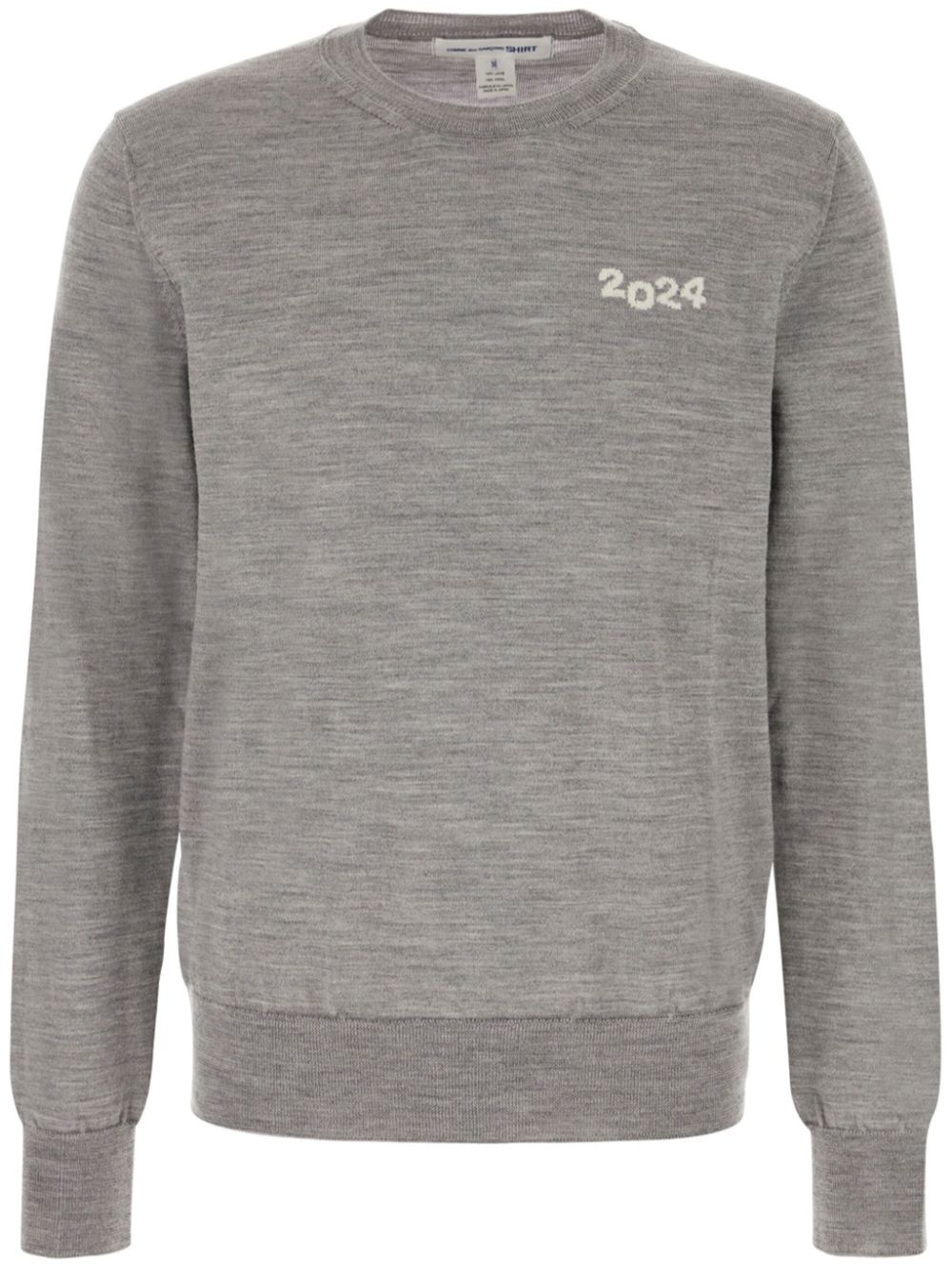 wool sweater Highlights - Grey - Wool - Number-motif at the chest - Ribbed cuffs and hem - Crew neck - Long sleeves - Straight hem Imported Composition Wool 100%