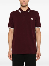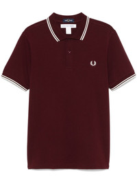x Fred Perry logo-embroidered polo shirt Highlights - Burgundy - Cotton - Pique weave - Embroidered logo at the chest - Short front button fastening - Stripe trim - Polo collar - Short sleeves - Slogan print to the rear - Straight hem Imported Composition Cotton 100% SIZE & FIT Model measurements Height 6 ft 1 in(1.85 m) Bust/Chest 35.82 in(91 cm) Hips 37.79 in(96 cm) Waist 29.13 in(74 cm) FittingInformation Designed for a regular fit, this polo shirt offers a comfortable loose fit throughout the body Made from a midweight non-stretch fabric, this piece offers minimal elasticity when worn