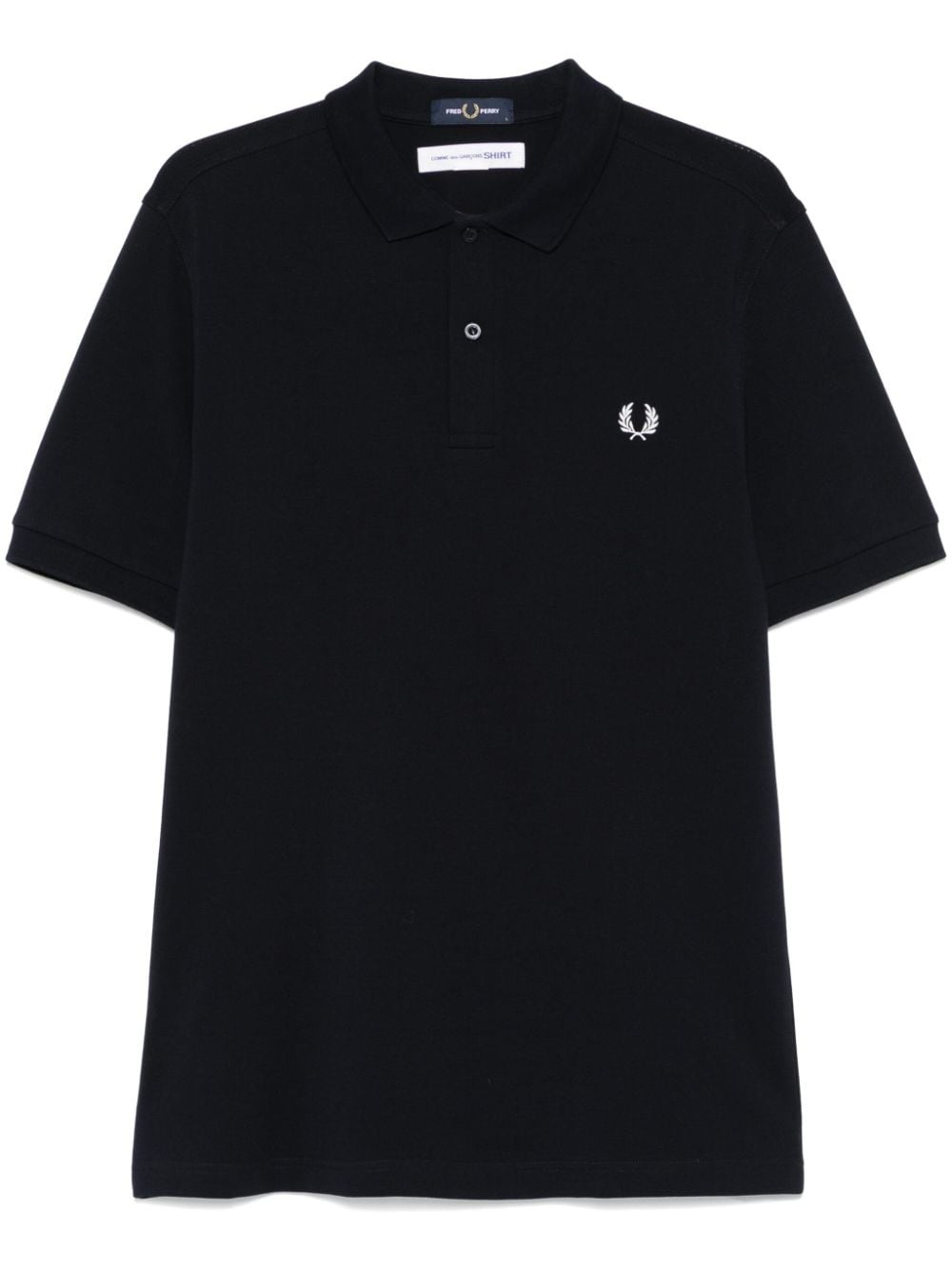 x Fred Perry slogan-print polo shirt Highlights - Navy blue - Cotton - Pique weave - Slogan print to the rear - Short front button fastening - Polo collar - Short sleeves - Embroidered logo at the chest - Straight hem Made in France Composition Cotton 100% SIZE & FIT Model measurements Height 6 ft 2 in(1.87 m) Bust/Chest 38.97 in(99 cm) Hips 37.99 in(96.5 cm) Waist 29.52 in(75 cm) FittingInformation Designed for a regular fit, this polo shirt offers a comfortable loose fit throughout the body Made from a midweight non-stretch fabric, this piece offers minimal elasticity when worn
