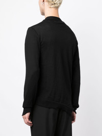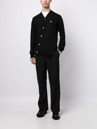 x Lacoste asymmetric logo-patch wool cardigan Highlights - Black - Wool - Knitted construction - Logo patch at the chest - V-neck - Off-centre front button fastening - Long sleeves - Side slits - Ribbed cuffs and hem - Asymmetric hem Imported Composition Wool 100% SIZE & FIT Model measurements Height 6 ft 2 in(1.89 m) Bust/Chest 37.4 in(95 cm) Hips 36.61 in(93 cm) Waist 28.34 in(72 cm) FittingInformation Designed for a slim fit, offering a comfortable fit that sits just away from the body Made with a midweight knit, this piece offers some stretch This piece fits true to size – take your usual size Washing instructions Dry Clean Only