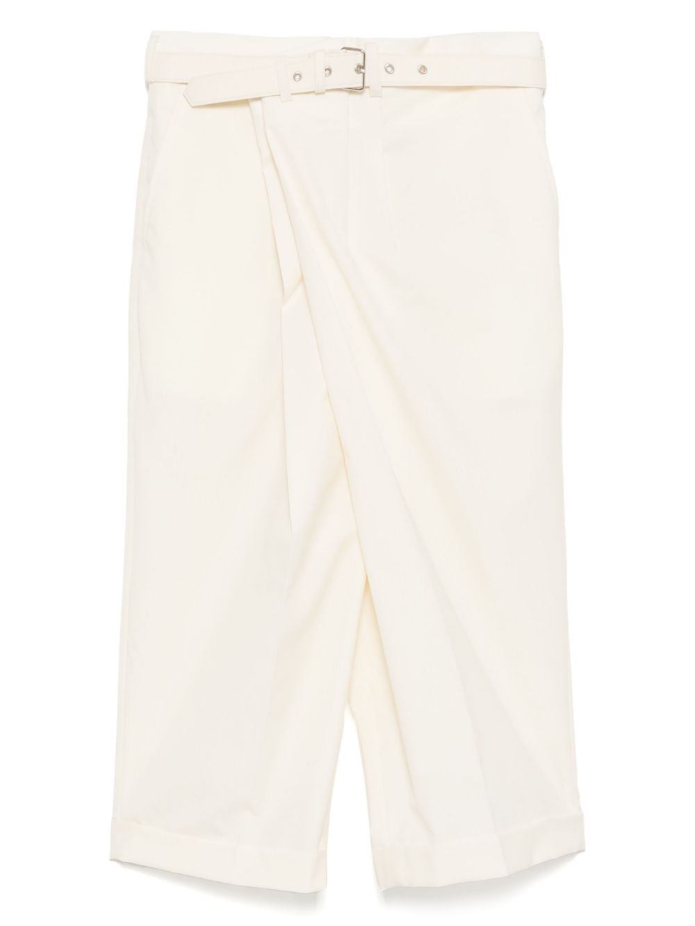 wide leg trousers Highlights - Cream white - Side zip fastening - Side slash pocket Imported Composition Lining: Cupro 100% Outer: Wool 100% SIZE & FIT Model measurements Height 5 ft 9 in(1.76 m) Bust/Chest 30.7 in(78 cm) Hips 33.46 in(85 cm) Waist 24.4 in(62 cm) FittingInformation Designed with a wide-leg cut, these trousers allow for a close fit at the waist and offer a loose and roomy fit over the leg The belt offers adjustability for fitted preferences Made from a midweight non-stretch fabric