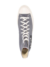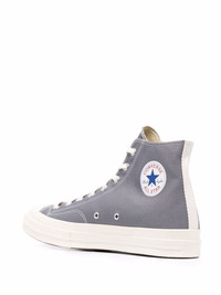 Chuck 70 high-top sneakers Comme Des Garcons Play and Converse collaborate on these Chuck Taylor '70 high-top sneakers, combining key details from both brands. The iconic heart-and-eyes motif sits on the outside of each upper, across from Converse's signature logo patch. Highlights - Grey - Signature one star logo - Signature heart print - Rubber toecap - Round toe - Front lace-up fastening - Flat rubber sole Imported Composition Sole: Rubber 100% Outer: Canvas 100% Lining: Cotton 100% SIZE & FIT FittingInformation This piece is unisex. Please take care when selecting your size This piece fits large - you might like to get half size down Measurement HEIGHT 2.36 in(6 cm)