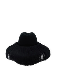 x Hizume fringed-brim fedora Highlights - Black - Wool - Fringed wide brim Imported Composition Wool 100%