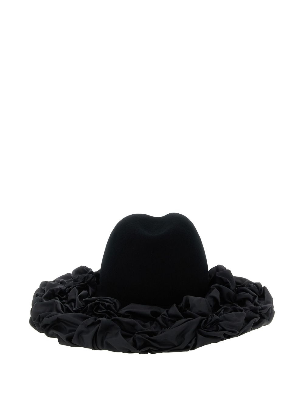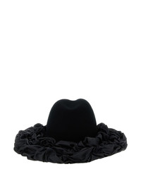 x Hizume ruffled wide-brim hat Highlights - Black - Wide brim - Ruffled design - Fedora style - Gathered detail Imported Composition Wool 100%