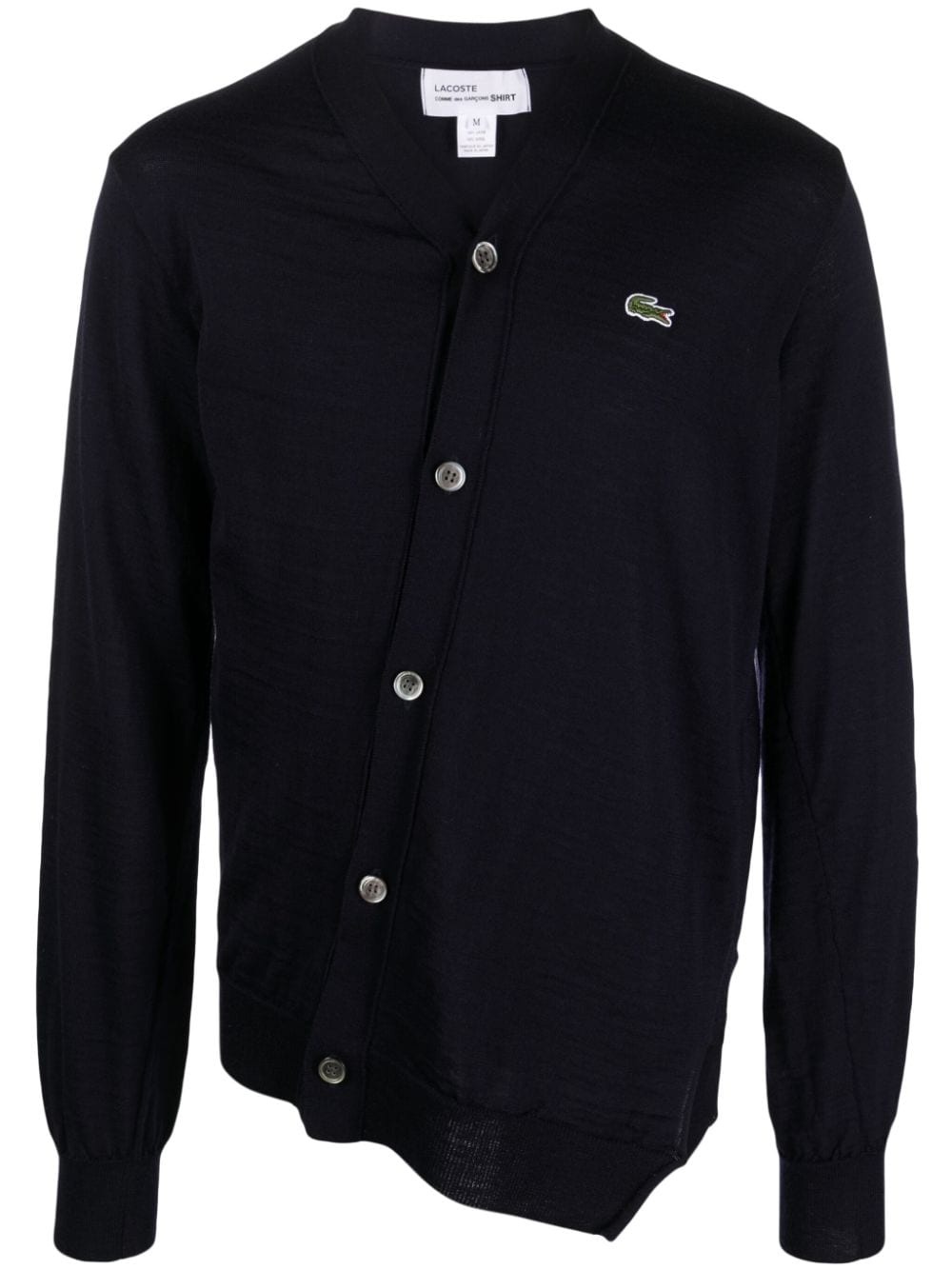 x Lacoste asymmetric wool cardigan Highlights - Navy blue - Wool - Knitted construction - Embroidered logo at the chest - V-neck - Drop shoulder - Asymmetric front button fastening - Long sleeves - Ribbed cuffs and hem - Asymmetric hem Imported Composition Wool 100% SIZE & FIT Model measurements Height 6 ft 0 in(1.84 m) Bust/Chest 35.82 in(91 cm) Hips 37 in(94 cm) Waist 28.34 in(72 cm) Washing instructions Hand Wash