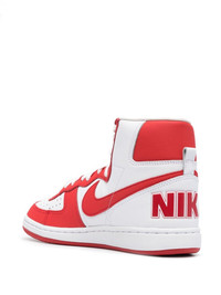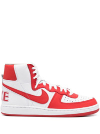x Nike Terminator sneakers Highlights - Off-white/red - Calf leather - Signature swoosh logo detail - Branded heel counter - Logo patch at the tongue - Panelled design - Perforated detailing - Round toe - Front lace-up fastening - Branded insole - Rubber sole - Unisex - When buying this unisex item, keep in mind that it is graded in standard men's sizing. Imported Composition Leather 100% SIZE & FIT Measurement HEEL 0.98 in(2.5 cm) Sole height 0.78 in(2 cm) HEIGHT 4.13 in(10.5 cm)