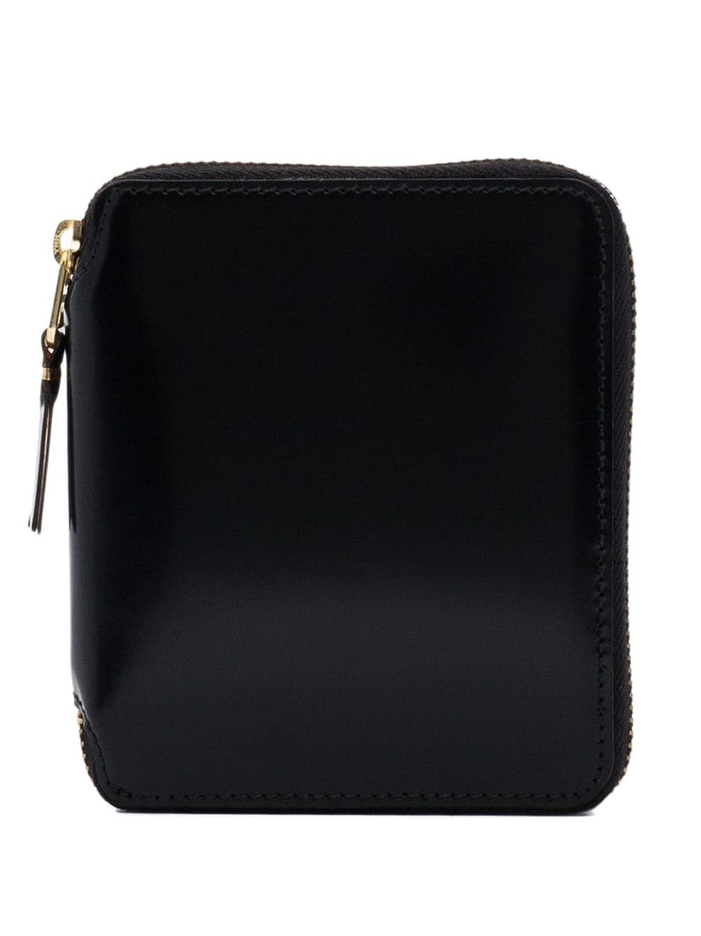 zip-around leather wallet Highlights - Black/gold-tone - Calf leather - All-around zip fastening - Main compartment - Internal card slots - Internal flap pocket Imported Composition Outer: Calf Leather 100% SIZE & FIT Measurement WIDTH 4.72 in(12 cm) LENGTH 3.93 in(10 cm) DEPTH 0.78 in(2 cm)