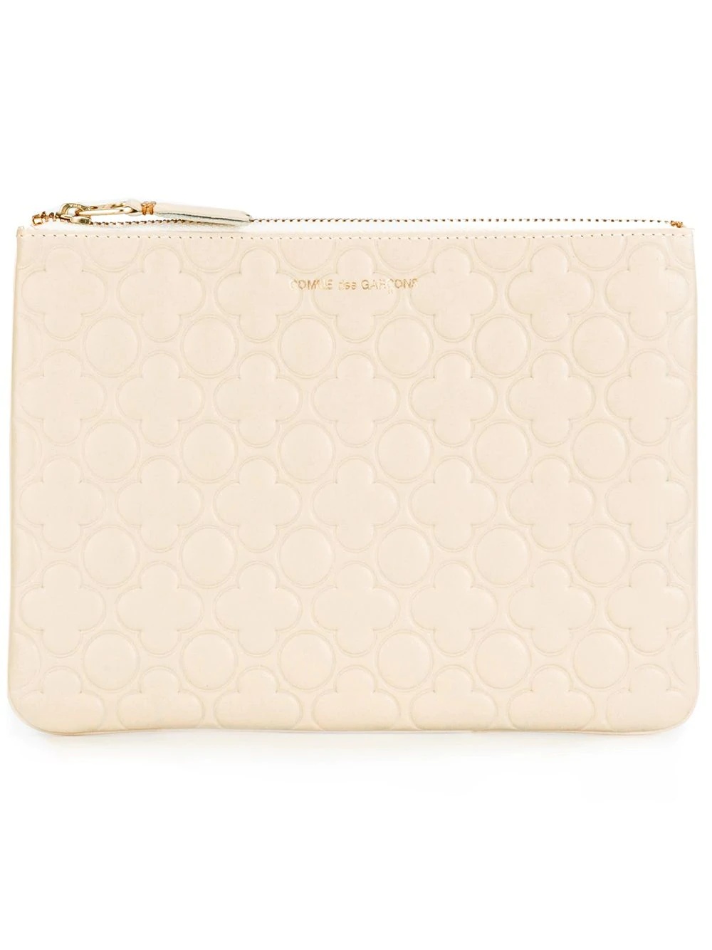 zipped clutch White leather zipped clutch from Comme Des Garcons. Imported Composition Leather 100% SIZE & FIT Model measurements Height 6 ft 2 in(1.87 m) Bust/Chest 37.79 in(96 cm) Hips 37.79 in(96 cm) Waist 30.31 in(77 cm) Measurement WIDTH 8.26 in(21 cm) HEIGHT 6.29 in(16 cm)