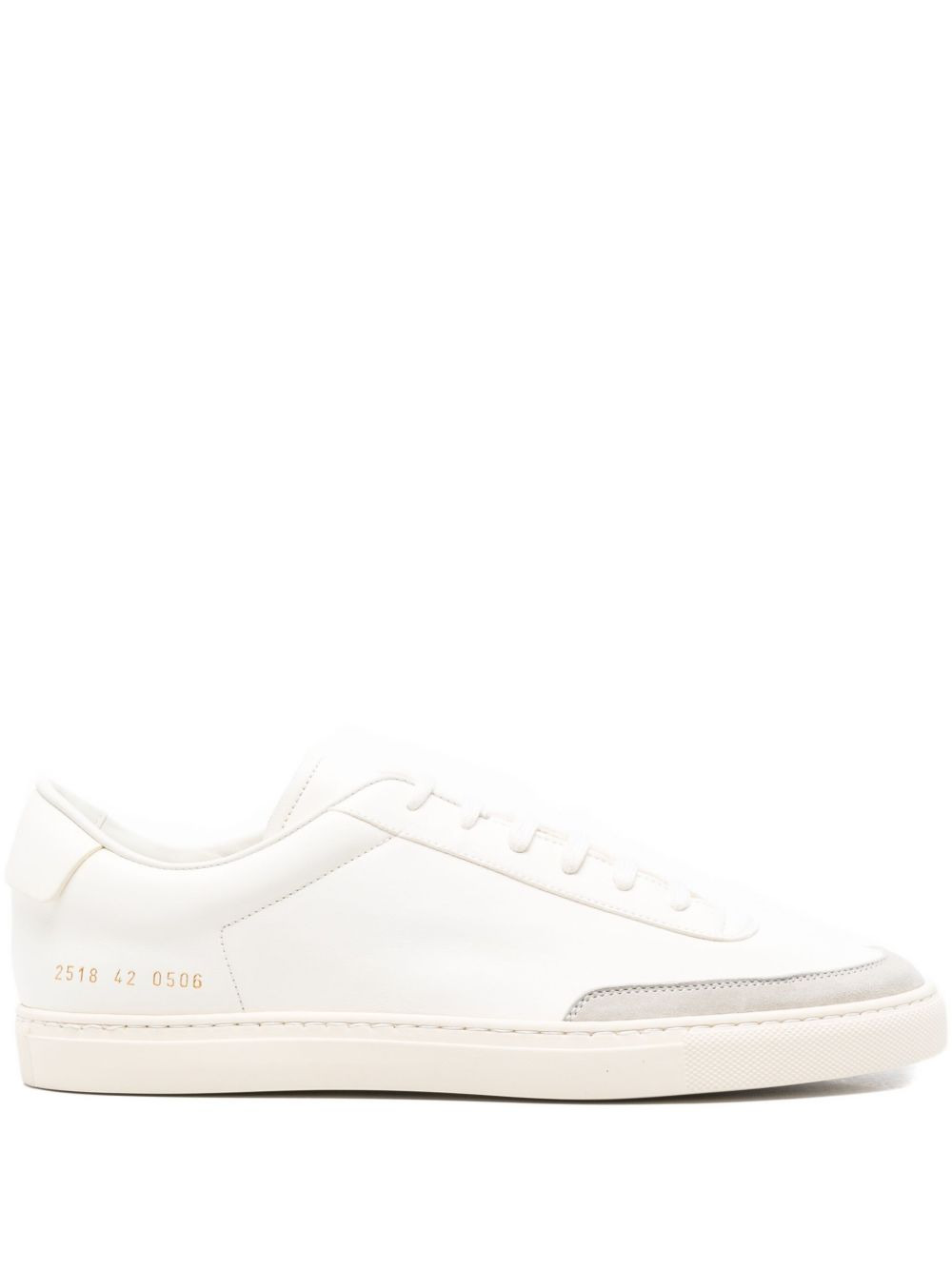 leather panelled low-tops sneakers Highlights - White - Leather upper - Lace-up fastening - Flat sole - Almond toe Made in Italy Composition Sole: Rubber 100% Lining: Calf Leather 100%, Fabric 100% Outer: Calf Leather 100%
