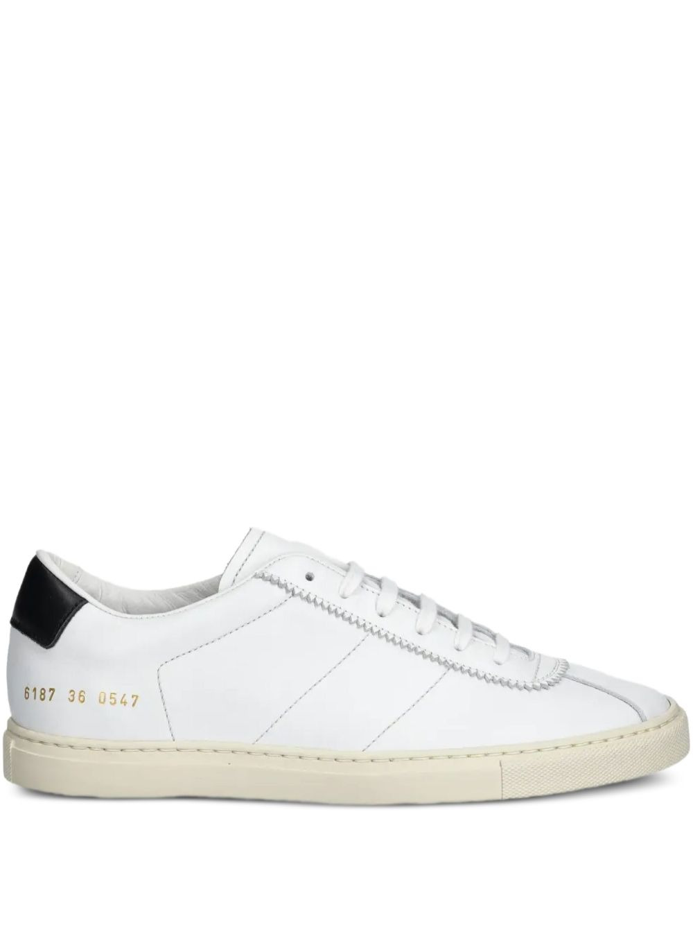 leather sneakers Highlights - White - Front lace-up fastening - Flat rubber sole - Contrasting heel counter - Branded insole Imported Composition Sole: Rubber 100% Lining: Calf Leather 100%, Fabric 100% Outer: Calf Leather 100%