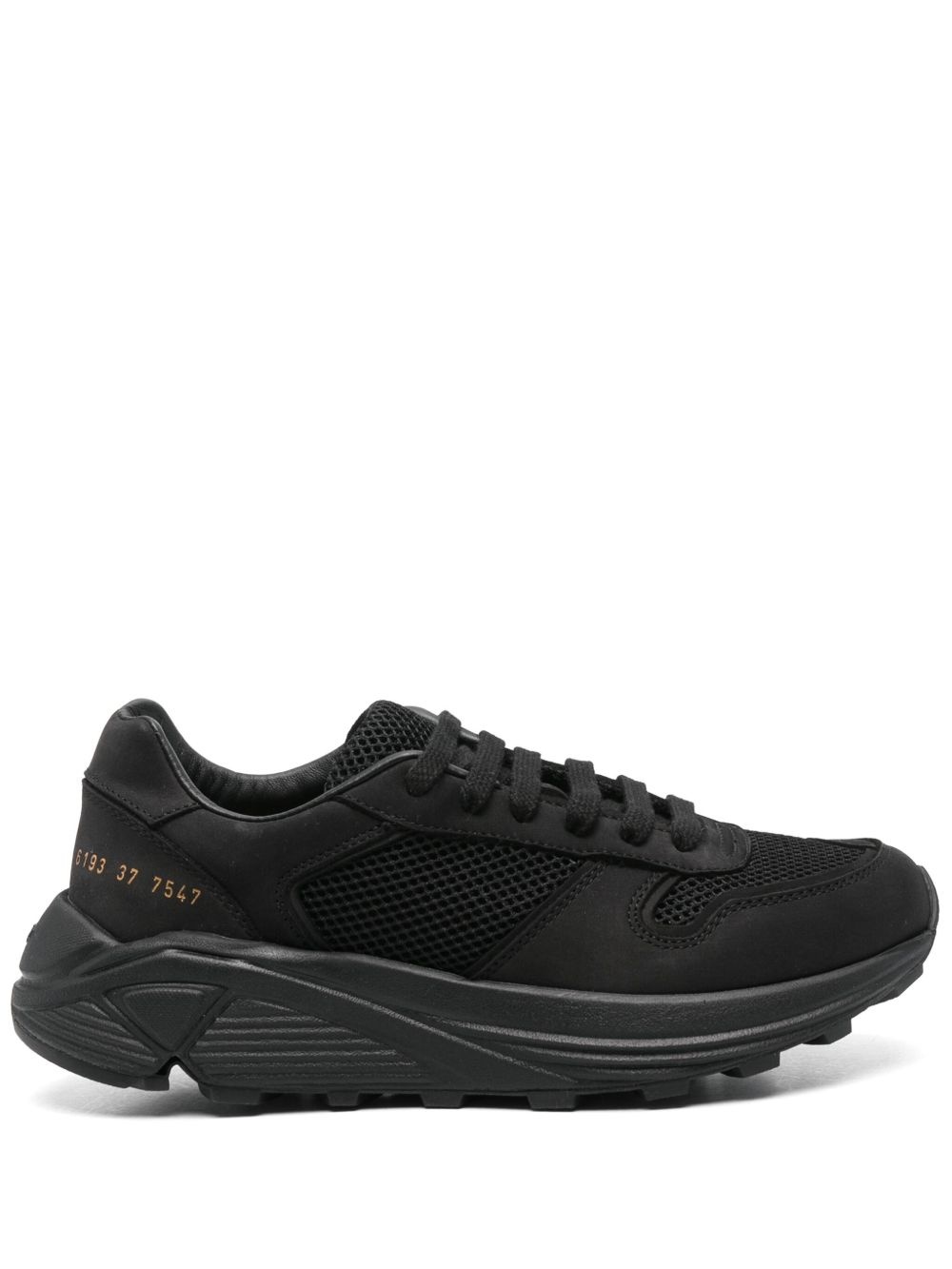 panelled sneakers Highlights - Black - Front lace-up fastening - Almond toe - Branded insole - Vibram® sole Made in Italy Composition Outer: Leather 100%, Polyester 100% Sole: Rubber 100% Lining: Leather 100%
