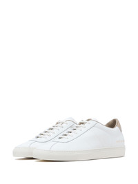 Tennis 70 leather sneakers Inspired by classic tennis footwear, Common Projects' Tennis 70 are seen here in a white and beige iteration that's expertly crafted from calf leather. Understated gold-tone branding is placed at the footbed and sides. Highlights - White/beige - Calf leather - Smooth grain - Signature numbers motif - Contrasting heel counter - Round toe - Front lace-up fastening - Branded insole - Rubber outsole Made in Italy Composition Lining: Fabric 100% Outer: Calf Leather 100% Sole: Rubber 100% SIZE & FIT Measurement Sole height 0.78 in(2 cm) HEEL 1.18 in(3 cm)