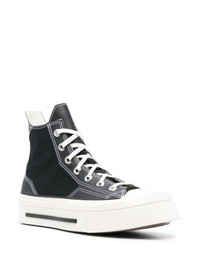 Chuck 70 De Luxe Squared sneakers Modelled on the design of the classic Chuck sneakers, Converse's Chuck 70 De Luxe Squared sneakers boast a recognisable high-top structure with a panelled design and chunkier sole than their predecessor. For SS24, the iconic design is seen here in black and grey hues, allowing the thick white sole to stand out. A squared-off iteration of the famous toecap completes the look. Highlights - Black/grey/white - Leather trim - Panelled design - Square toe - Logo patch to the side - Logo patch to the rear - Branded insole - Rubber sole - Front lace-up fastening Made in Italy Composition Leather 100% SIZE & FIT Measurement HEIGHT 4.33 in(11 cm) Sole height 1.37 in(3.5 cm)