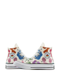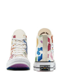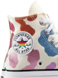 Chuck 70 glitter-patch sneakers Highlights - Off-white - Glitter-effect cow-print pattern - Rainbow coloured sole - High-top design - Lace-up fastening - Padded ankle collar Imported Composition Sole: Rubber 100% Lining: Canvas 100% Outer: Canvas 100%