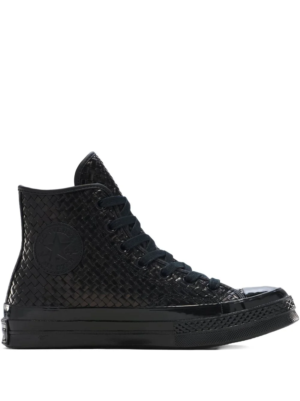 Chuck 70 Hi sneakers Highlights - Black - Woven design - Front lace-up fastening - Round toe - Flat rubber sole - High-top design - Signature chuck taylor patch - These styles are supplied by a premium and authenticated sneaker marketplace. stocking only the most sought-after footwear, they source and curate some of the most hard to find sneakers from around the world. Imported Composition Outer: Calf Leather 100% Sole: Rubber 100%