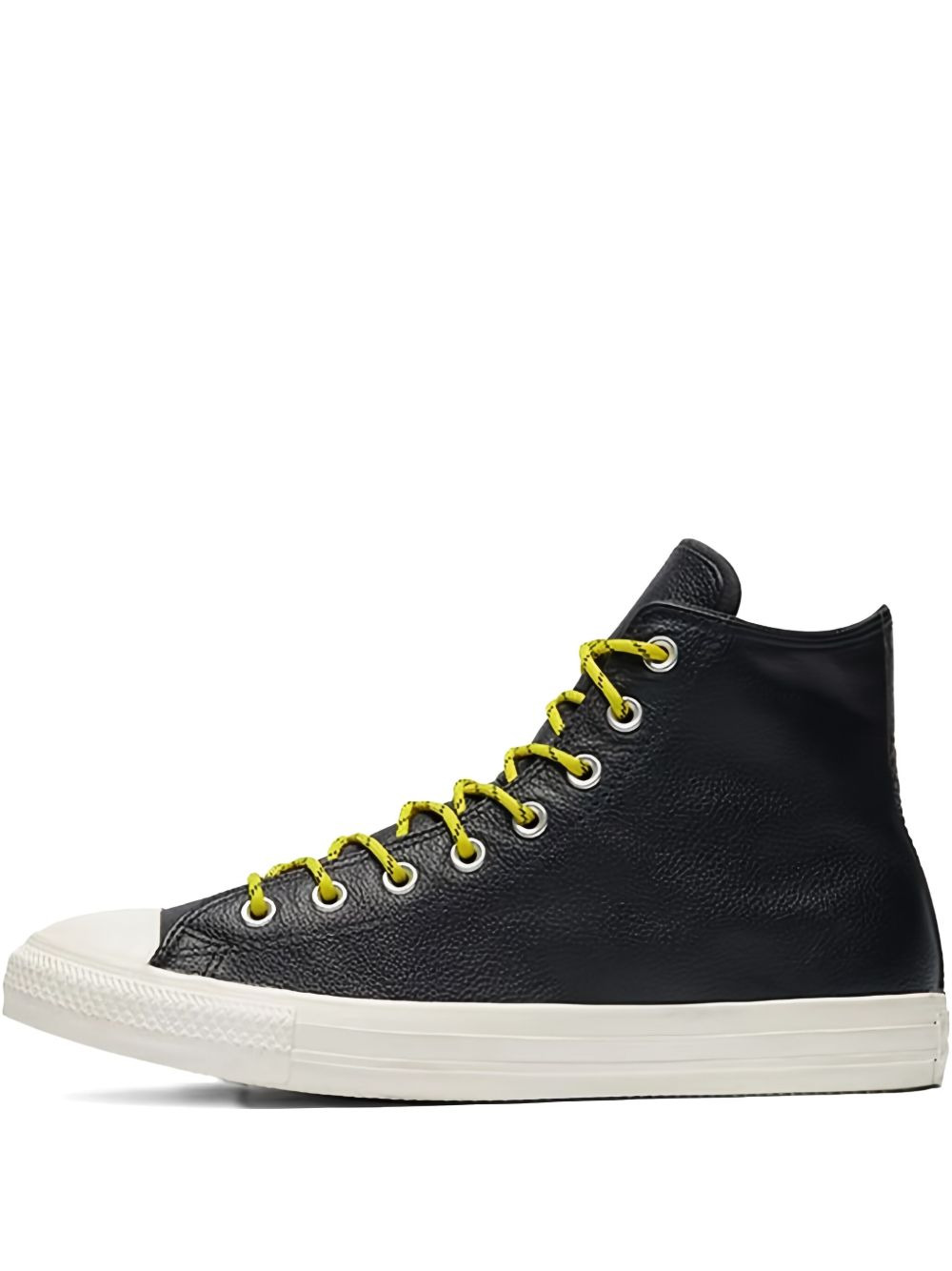 Chuck Taylor All Star high-top sneakers Highlights - Black - Leather - Yellow laces - Flat rubber sole - High-top design - Round toe - These styles are supplied by a premium and authenticated sneaker marketplace. stocking only the most sought-after footwear, they source and curate some of the most hard to find sneakers from around the world. Imported Composition Lining: Fabric 100% Outer: Calf Leather 100% Sole: Rubber 100%
