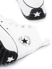 Run Star Hike high-top sneakers Converse says the Run Star Hike sneakers are a playful, reimagined version of the brand's Chuck Taylor style. Note the most iconic elements, like the rubber toe caps, logo patches and baseball-inspired uppers, remain the same. Made from durable canvas, they're elevated by ridged platform soles and cushioned insoles in contrasting black and brown hues. Highlights - White/black - Canvas - Signature run star hike sole - Signature star patch to the sides - Front lace-up fastening - Round toe - Eyelet detailing - Pull-tab at the heel - Ridged rubber sole Imported Composition Cotton 100% SIZE & FIT Model measurements Height 5 ft 11 in(1.8 m) Bust/Chest 31.49 in(80 cm) Hips 36.22 in(92 cm) Waist 25.59 in(65 cm) FittingInformation This piece fits true to size. We recommend you get your regular size