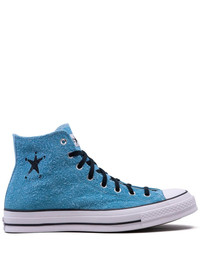 x Stussy Chuck 70 "Blue" sneakers Highlights - Blue - Suede - Signature star patch to the sides - Round toe - Front lace-up fastening - Logo patch at the tongue - Branded insole - Rubber sole - These styles are supplied by a premium and authenticated sneaker marketplace. stocking only the most sought-after footwear, they source and curate some of the most hard to find sneakers from around the world. Imported Composition Sole: Rubber 100% Lining: Fabric 100% Outer: Suede 100%