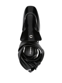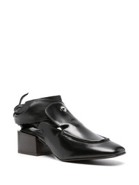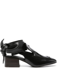 55mm singback moccasins black calf leather smooth grain tie-fastening slingback strap 55mm low block heel open back silver-tone logo plaque moc stitching square toe rubber sole buckle-fastening slingback strap Imported Composition Lining: Calf Leather 100% Sole: Calf Leather 100%, Rubber 100% Outer: Calf Leather 100% SIZE & FIT Measurement HEEL 2.16 in(5.5 cm)