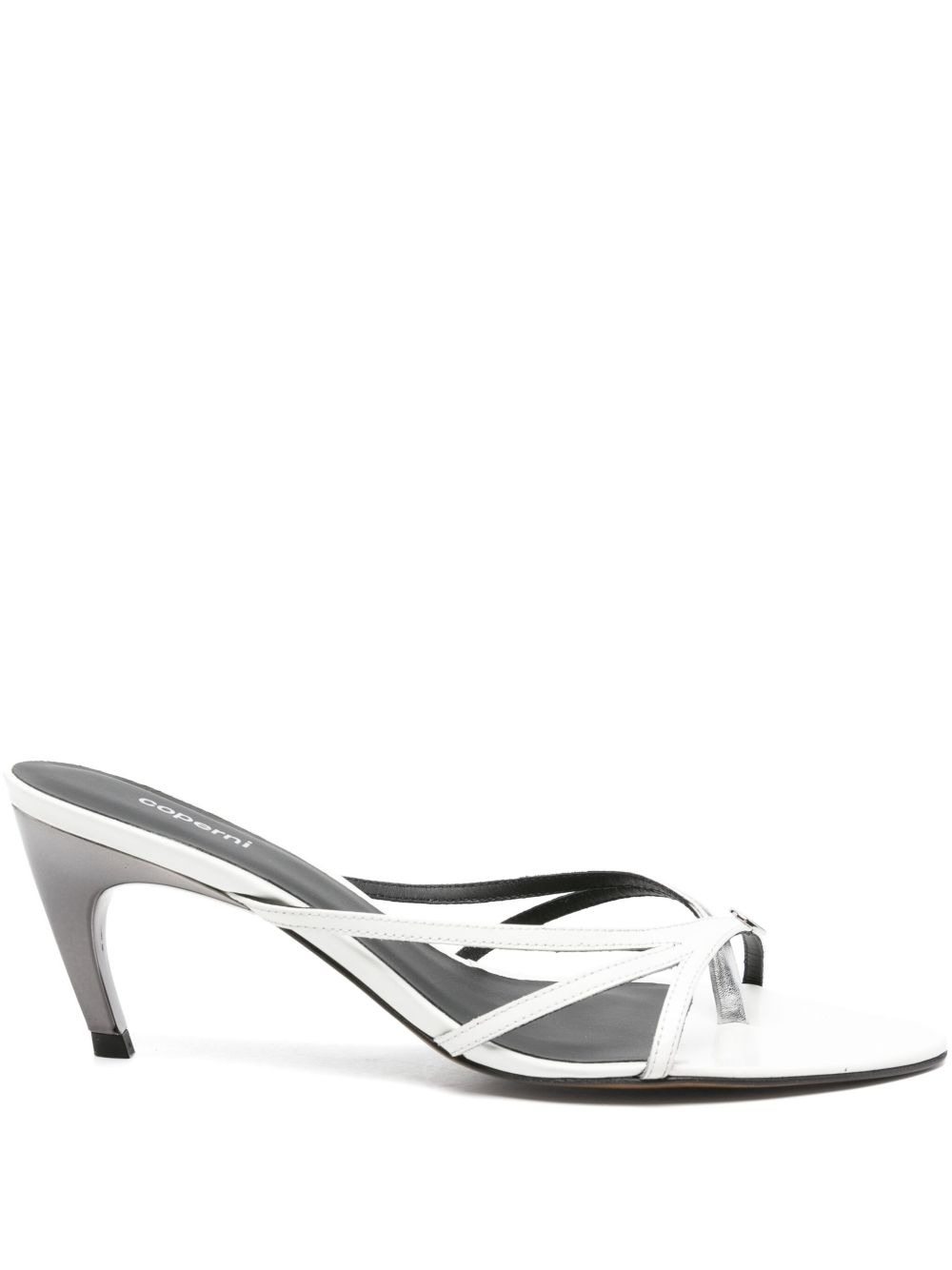 75mm leather mules Highlights - White - Criss-cross straps - Open toe - 75mm heel Made in Italy Composition Lining: Calf Leather 100% Sole: Calf Leather 100% Outer: Calf Leather 100% SIZE & FIT Measurement HEEL 2.95 in(7.5 cm)