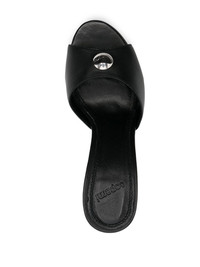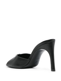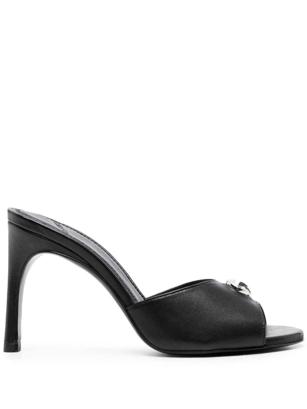 95mm leather logo-plaque sandals Highlights - Jet black - Calf leather - Silver-tone logo plaque - Branded leather insole - Open toe - 95mm high heel Imported Composition Outer: Calf Leather 100% Lining: Calf Leather 100% Sole: Calf Leather 100% SIZE & FIT Measurement HEEL 3.74 in(9.5 cm)