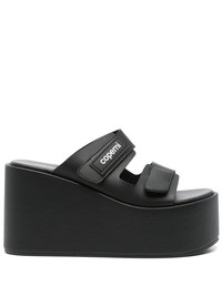 95mm Patch sandals Highlights - Black - Double-strap design - Branded footbed - High wedge heel - Open toe Made in Italy Composition Sole: Rubber 100% Outer: Polyurethane 100% Lining: Calf Leather 100% SIZE & FIT Measurement HEEL 3.74 in(9.5 cm) PLATFORM 2.36 in(6 cm)