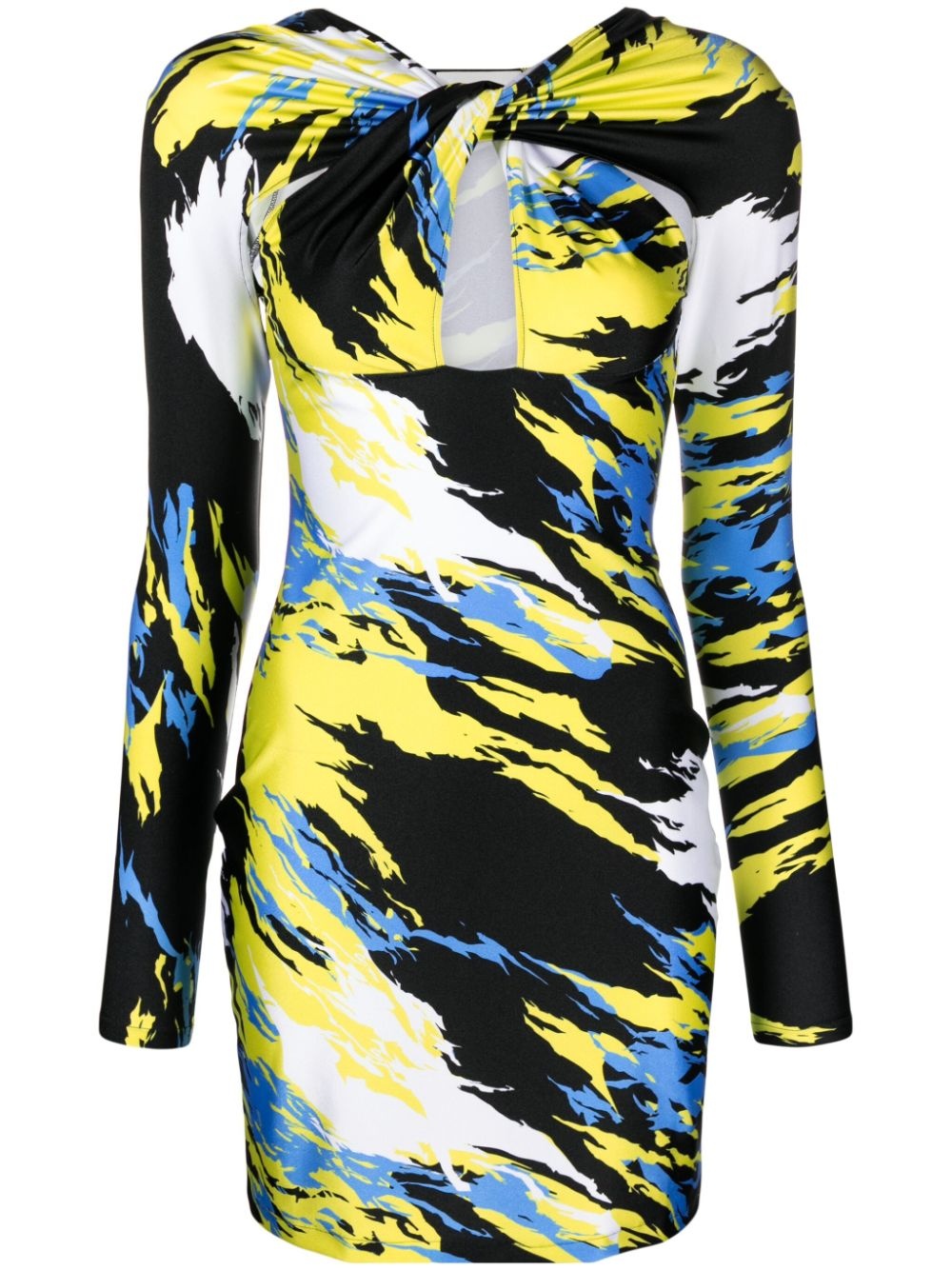 twisted cut-out mini dress Coperni injects its classic sleekness into this multicolour minidress. Cut from stretch-jersey, it features a twisted cut-out neckline that pulls together at the collarbone. It is steeped in a vibrant abstract-pattern print inspired by motorcycle flames. Highlights - Lime green/multicolour - Jersey texture - Abstract pattern print - Cut-out detailing - Twist detailing - Stretch-design - Crew neck - Concealed rear zip fastening - Long sleeves - Thigh-length - Straight hem Imported Composition Polyamide 80%, Elastane 20% SIZE & FIT Model measurements Height 5 ft 10 in(1.79 m) Bust/Chest 31.49 in(80 cm) Hips 35.03 in(89 cm) Waist 23.62 in(60 cm) FittingInformation Designed for a close fit throughout Made from a midweight stretch fabric, this piece offers elasticity and flexibility when worn This piece fits true to size – take your usual size Measurement BUST 25.98 in(66 cm) LENGTH 30.98 in(78.7 cm) WAIST 24.01 in(61 cm) SLEEVE LENGTH 20.51 in(52.1 cm) HIPS 30.98 in(78.7 cm)