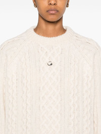 Aran-knit sweater Highlights - Light beige - Lambs wool-blend - Aran knit - Crew neck - Long raglan sleeves - Logo plaque - Ribbed cuffs and hem Imported Composition Lambs Wool 80%, Polyamide 20% SIZE & FIT Model measurements Height 5 ft 10 in(1.77 m) Bust/Chest 33.07 in(84 cm) Hips 37 in(94 cm) Waist 24.8 in(63 cm) FittingInformation Designed for a relaxed fit, this piece allows for comfort and movement when worn Made with a midweight knit, this piece offers some stretch Washing instructions Dry Clean Only