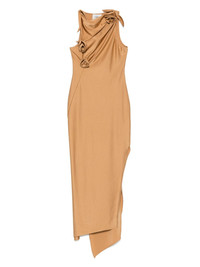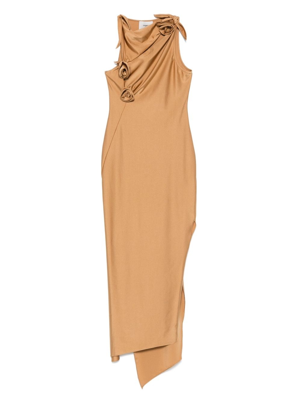 asymmetric flower maxi dress Highlights - Cognac brown - Boat neck - Sleeveless - Cut-out detailing - Asymmetric hem Made in France Composition Polyamide 80%, Elastane 20% SIZE & FIT Model measurements Height 5 ft 9 in(1.75 m) Bust/Chest 34.64 in(88 cm) Hips 36.61 in(93 cm) Waist 26.37 in(67 cm) FittingInformation Designed for a close fit throughout The adjustable shoulder straps allow for a preferred fit when worn Made from a midweight stretch fabric, this piece offers elasticity and flexibility when worn