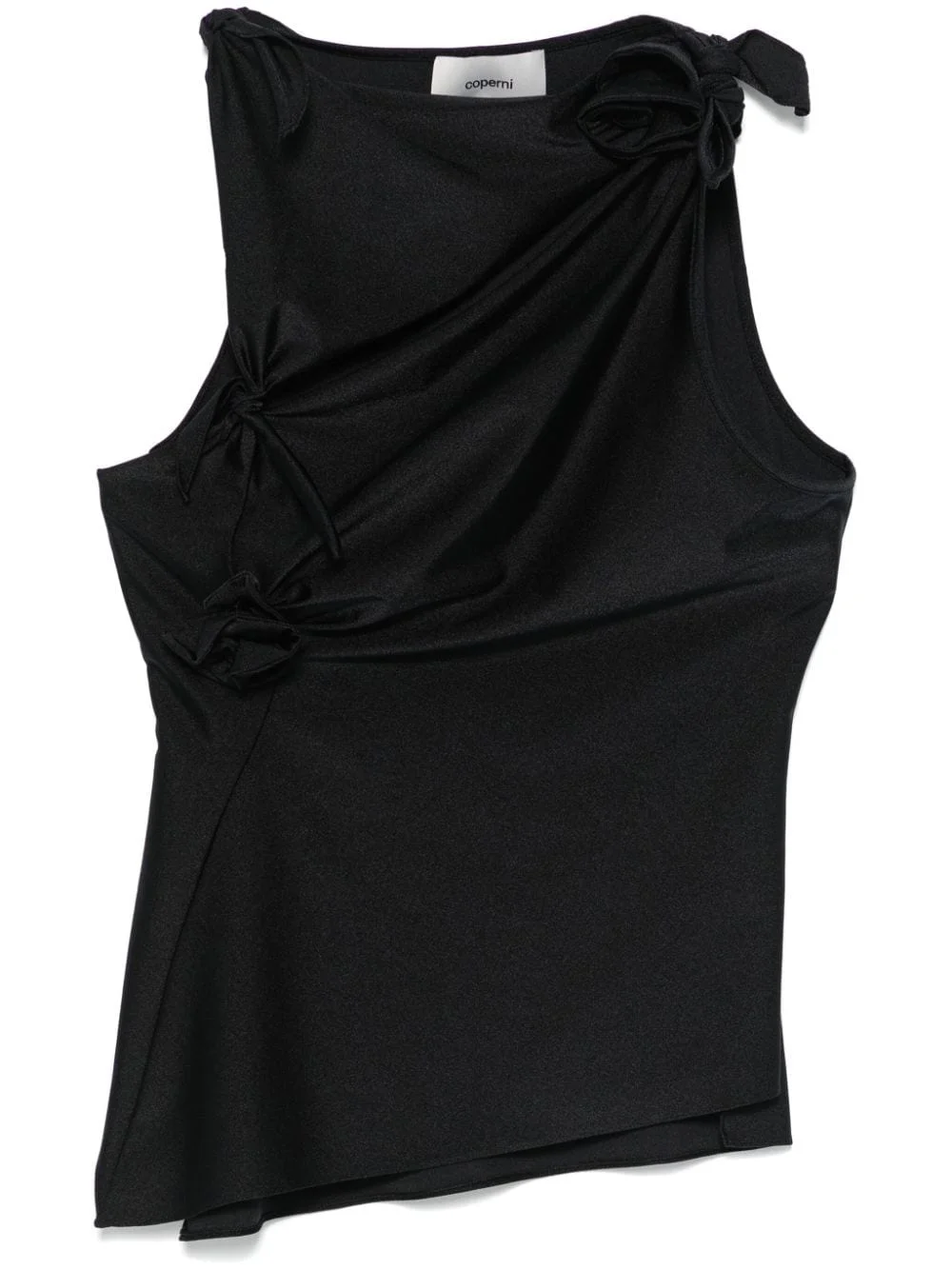 asymmetric flower top Highlights - Black - Satin weave - Floral applique - Side tie fastening - Round neck - Sleeveless - Cut-out detailing - Side slits - Straight hem Made in France Composition Polyamide 80%, Spandex/Elastane 20% SIZE & FIT Model measurements Height 5 ft 10 in(1.77 m) Bust/Chest 30.7 in(78 cm) Hips 35.03 in(89 cm) Waist 23.62 in(60 cm) Measurement CHEST 25.98 in(66 cm) LENGTH 21.25 in(54 cm) WAIST 24.4 in(62 cm) FittingInformation Designed for a close fit throughout The tie fastening gives an adaptable and personalised fit Made from a midweight stretch fabric, this piece offers elasticity and flexibility when worn