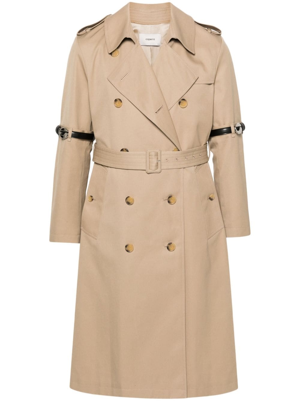 belt-detail trench coat Highlights - Medium beige - Gabardine weave - Classic collar - Epaulettes - Long sleeves - Belt detail at the sleeves - Two side slit pockets - Detachable belt - Pleat detail to the rear - Internal slip pocket - Full lining - Straight hem - Double-breasted button fastening - When buying this unisex item, keep in mind that it is graded in standard men's sizing. Made in France Composition Polyester 65%, Cotton 35% SIZE & FIT Model measurements Height 6 ft 2 in(1.87 m) Bust/Chest 37.79 in(96 cm) Hips 37.79 in(96 cm) Waist 30.31 in(77 cm) FittingInformation This unisex piece is designed for a slim fit whether you usually select women's or men's sizes The belt offers adjustability for fitted preferences Made from a midweight non-stretch fabric Washing instructions Machine Wash
