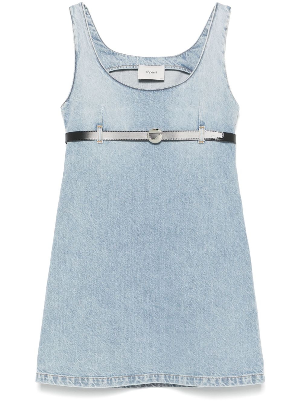 belted denim mini dress Highlights - Light blue - Concealed side zip fastening - Belt loops - Detachable belt - Scoop neck Imported Composition Lining: Polyester 50%, Cotton 50% Outer: Organic Cotton 100% SIZE & FIT Model measurements Height 5 ft 10 in(1.78 m) Bust/Chest 33.85 in(86 cm) Hips 36.61 in(93 cm) Waist 26.77 in(68 cm) Measurement HIPS 38.58 in(98 cm) LENGTH 32.28 in(82 cm) WAIST 32.28 in(82 cm) FittingInformation Designed for a slim fit that sits just away from the body offering a close yet comfortable fit The dart stitching adds structure and a closer fit in the torso of this piece Sturdy and hard-wearing, this denim piece offers no stretch