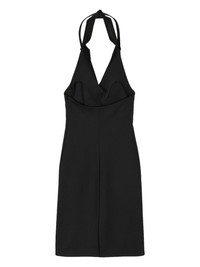 belted-halterneck midi dress Highlights - Black - Belted halterneck - Sleeveless - Concealed side hook and zip fastening - Rear slit - Straight hem - Unlined - Mid-length Made in France Composition Recycled Polyester 49%, Viscose 34%, Polyester 15%, Elastane 2%