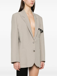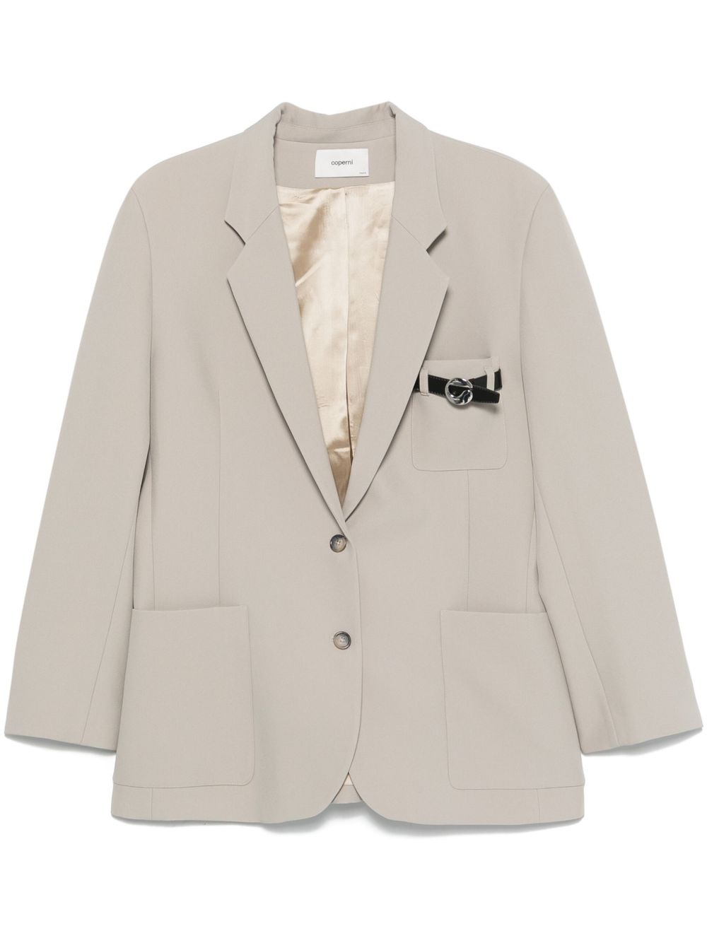 belted-pocket blazer Highlights - Sage green - Front button fastening - Chest patch pocket - Long sleeves - Two side patch pockets Made in France Composition Recycled Polyester 100%, Acetate 52%, Viscose 48% SIZE & FIT Model measurements Height 5 ft 10 in(1.78 m) Bust/Chest 33.85 in(86 cm) Hips 36.61 in(93 cm) Waist 26.77 in(68 cm) FittingInformation Designed to be unstructured, offering a loose fit throughout The internal shoulder pads offer a structured shape Made from a midweight non-stretch fabric