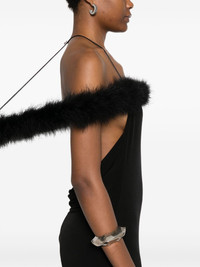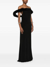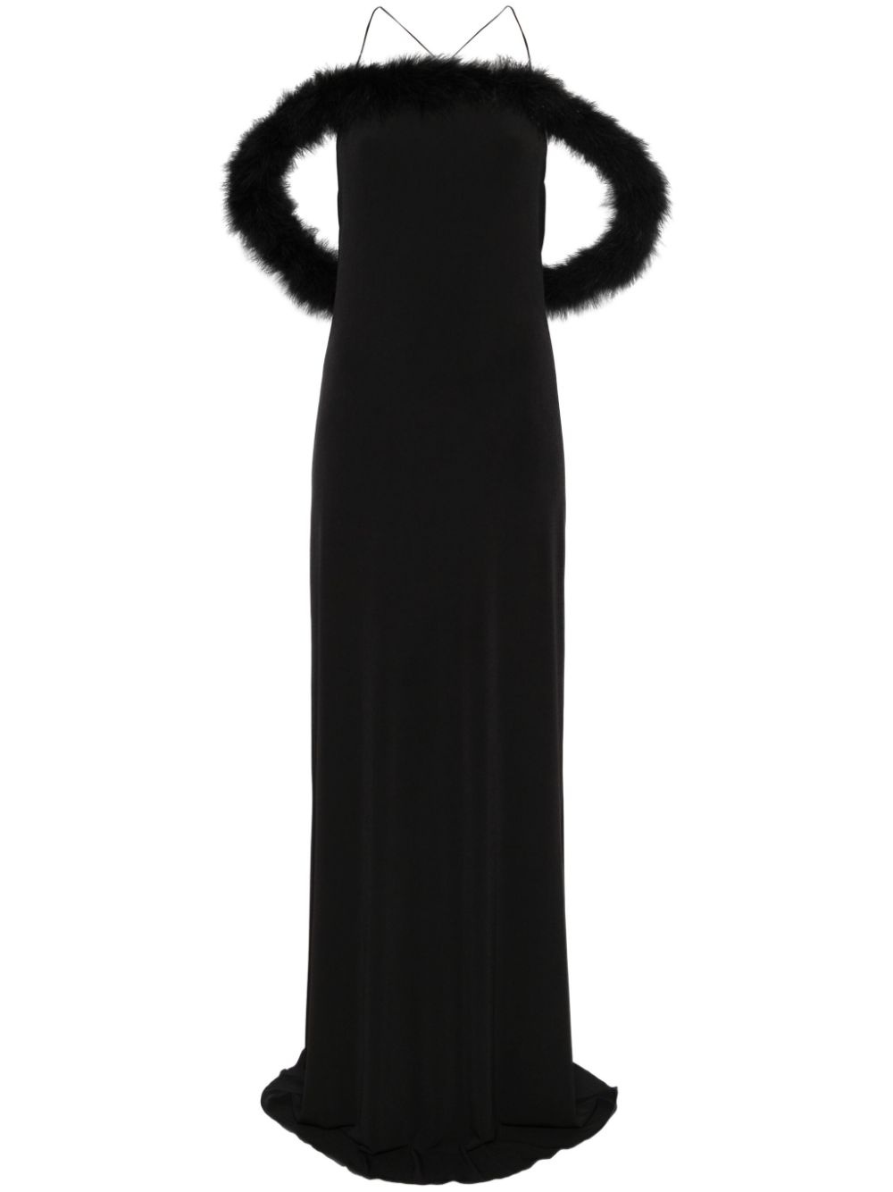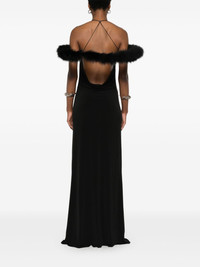 Boa Halo maxi dress Highlights - Black - Jersey texture - Square neck - Feather-trim hoop - Spaghetti straps - Open back - Silver-tone logo plaque - Rear criss-cross straps - Slight flare - Unlined - Straight hem - Long length Made in Italy Composition Turkey Feather 100%, Polyester 95%, Elastane 5% SIZE & FIT Model measurements Height 5 ft 11 in(1.8 m) Bust/Chest 31.49 in(80 cm) Hips 36.61 in(93 cm) Waist 24.4 in(62 cm) FittingInformation Designed for a slim fit that sits just away from the body offering a close yet comfortable fit Made from a midweight stretch fabric, this piece offers elasticity and flexibility when worn