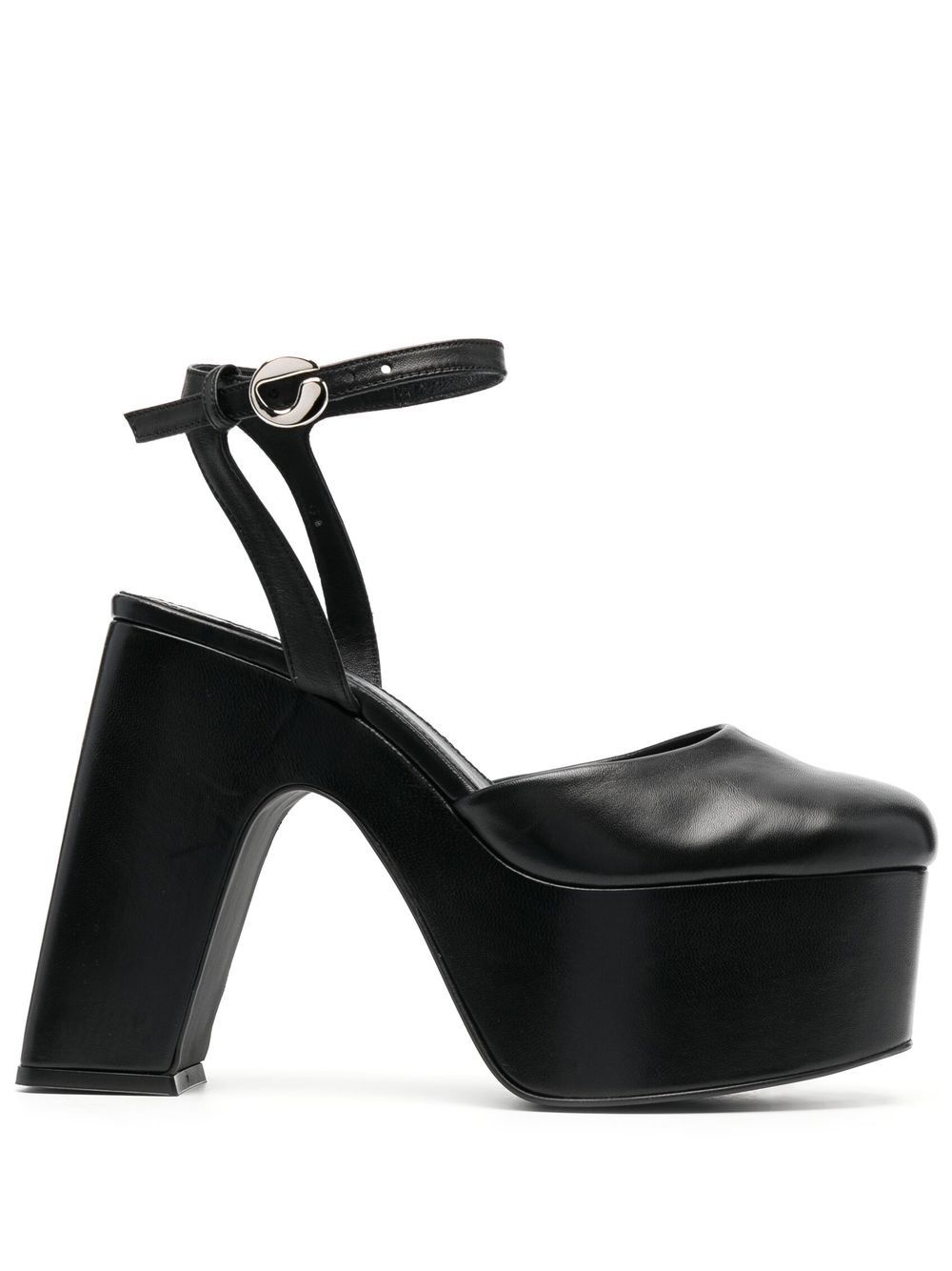 Bridge platform pumps black calf leather satin finish round toe buckle-fastening ankle strap platform sole branded insole Imported Composition Outer: Calf Leather 100% Lining: Calf Leather 100% Sole: Rubber 100% SIZE & FIT Measurement CIRCUMFERENCE 8.66 in(22 cm) HEEL 5.51 in(14 cm) HEIGHT 3.14 in(8 cm) PLATFORM 2.55 in(6.5 cm)