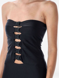 buckle-detail midi dress Highlights - Black - Strapless neckline - Multiple buckle embellishment - Straight skirt Imported Composition Polyamide 100%