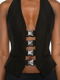 buckle-fastening waistcoat Highlights - Black - Multiple buckles - Sleeveless - Straight hem Imported Composition Lining: Acetate 52%, Viscose 48% Outer: Recycled Polyester 100% SIZE & FIT Model measurements Height 5 ft 10 in(1.78 m) Bust/Chest 31.49 in(80 cm) Hips 37 in(94 cm) Waist 23.62 in(60 cm) Washing instructions Dry Clean Only
