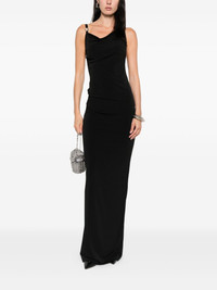 cowl-neck strap dress Highlights - Black - Cowl neck - Shoulder straps - Ring detail Made in Italy Composition Polyester 95%, Elastane 5% SIZE & FIT Model measurements Height 5 ft 10 in(1.78 m) Bust/Chest 33.46 in(85 cm) Hips 36.22 in(92 cm) Waist 23.22 in(59 cm) Washing instructions Hand Wash