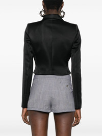 Double-breasted cropped asymmetric satin-crepe blazer