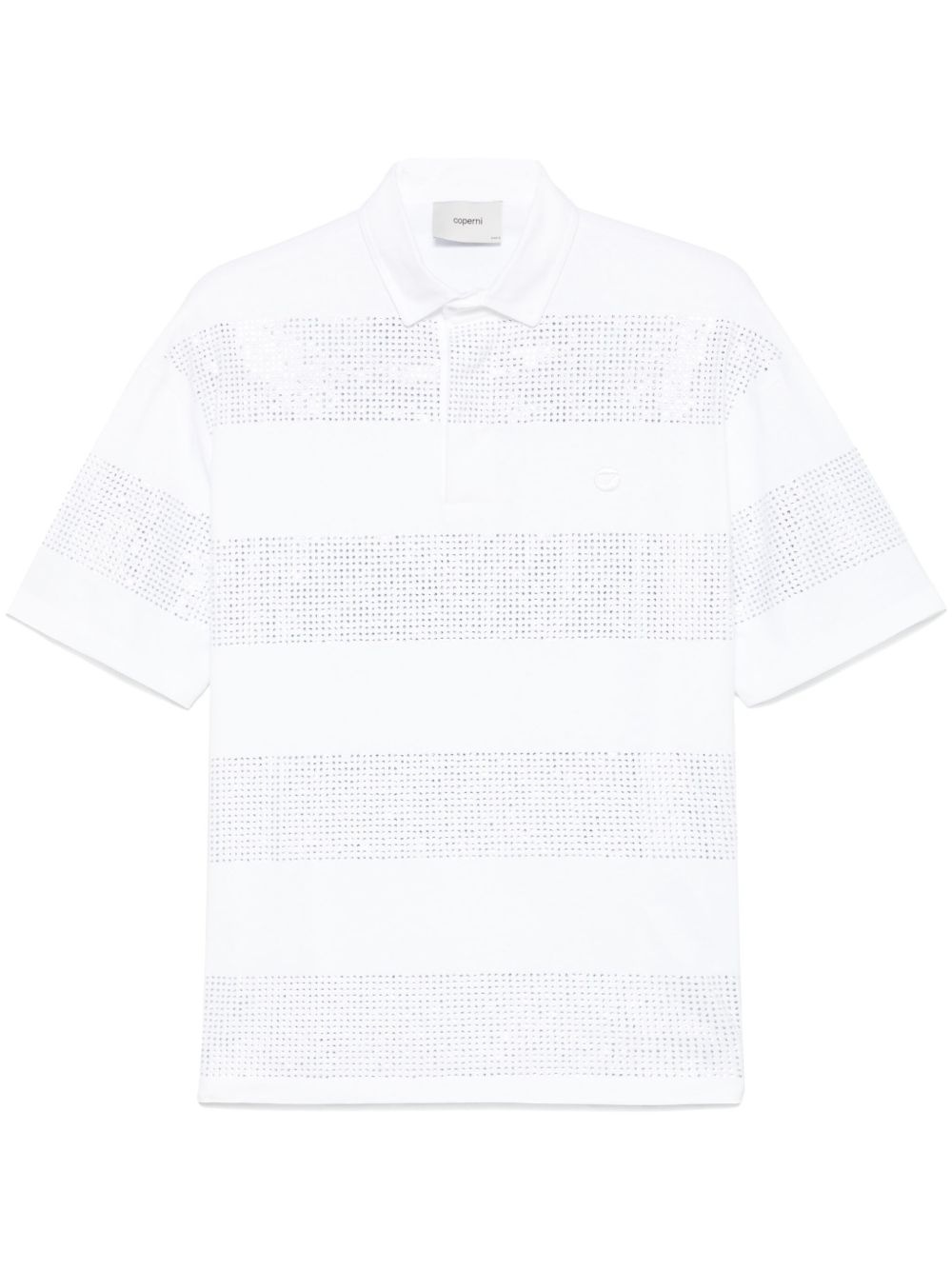 crystal-striped polo shirt Highlights - White - Front button placket - Short side slits - Embroidered logo at the chest - Short sleeves Imported Composition glass 100%, Cotton 100% SIZE & FIT Model measurements Height 5 ft 10 in(1.77 m) Bust/Chest 29.92 in(76 cm) Hips 34.25 in(87 cm) Waist 23.62 in(60 cm) FittingInformation Designed for a relaxed fit, this piece allows for comfort and movement when worn Made from a midweight non-stretch fabric, this piece offers minimal elasticity when worn
