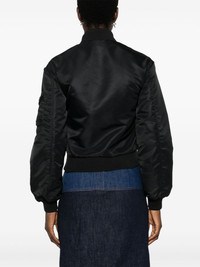 cut-out bomber jacket Highlights - Black - Recycled polyamide - Panelled design with zip fastening - Cut-out detailing - Front zip fastening - Ribbed band collar - Long sleeves - Ribbed cuffs and hem - Sleeve zip pocket - Rubberised logo detail - Two chest flap pockets - Diamond-quilted lining - Straight hem Made in Italy Composition Lining: Polyester 100%, Acetate 62%, Viscose 38% Outer: Recycled Polyamide 100% SIZE & FIT Model measurements Height 5 ft 10 in(1.77 m) Bust/Chest 32.28 in(82 cm) Hips 35.03 in(89 cm) Waist 25.19 in(64 cm) FittingInformation Designed for a slim fit that sits just away from the body offering a close yet comfortable fit The ribbed hem offers a close, comfortable fit Made from a midweight non-stretch fabric Washing instructions Dry Clean Only