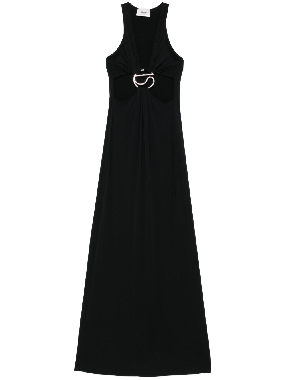 C-logo cut-out maxi dress Highlights - Black - V-neck - Racerback - Sleeveless Made in Italy Composition Polyamide 82%, Elastane 18% SIZE & FIT Model measurements Height 5 ft 10 in(1.77 m) Bust/Chest 33.07 in(84 cm) Hips 37 in(94 cm) Waist 24.8 in(63 cm) FittingInformation Designed for a close fit throughout Made from a midweight stretch fabric, this piece offers elasticity and flexibility when worn