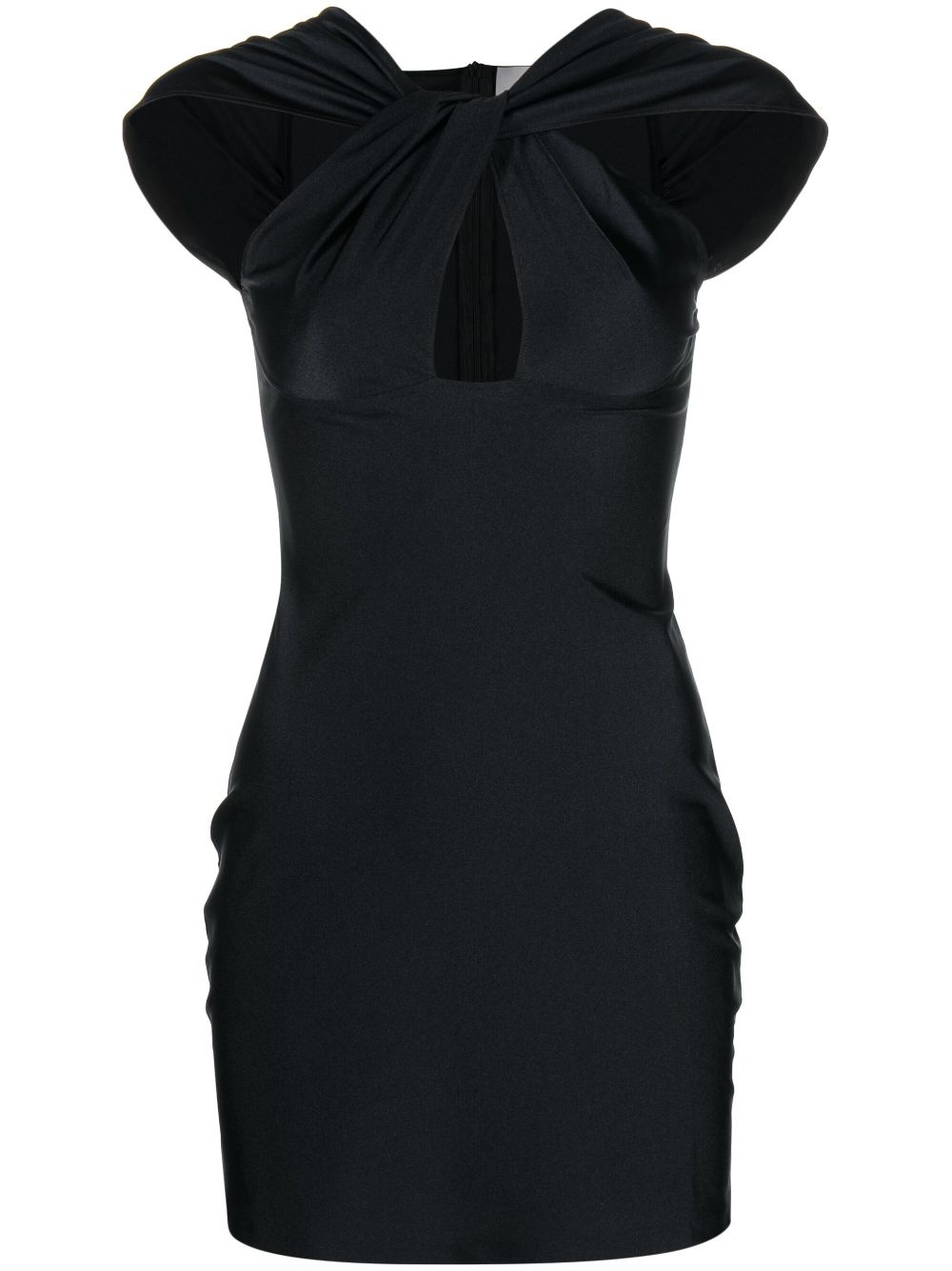 twisted cut-out mini dress Rendered in a black colour and made from stretch-jersey, this minidress from COPERNI is cut for a thigh-length and boasts a cut-out twisted neckline that elevates its fitted silhouette. Highlights - Black - Cut-out detailing - Twist detailing - Sleeveless - Stretch-jersey - Concealed rear zip fastening Imported Composition Polyamide 80%, Elastane 20% SIZE & FIT Model measurements Height 5 ft 10 in(1.79 m) Bust/Chest 31.1 in(79 cm) Hips 35.03 in(89 cm) Waist 24.01 in(61 cm) Measurement LENGTH 31.88 in(81 cm) WAIST 31.49 in(80 cm) HIPS 37.79 in(96 cm) FittingInformation Designed for a close fit throughout Made from a lightweight non-stretch fabric, this piece offers minimal elasticity when worn This piece fits true to size – take your usual size Washing instructions Machine Wash