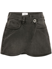 denim mini skirt Highlights - Dark grey - Cotton - Washed denim - Wrap design - Belt loops - Classic five pockets - Thigh-length - Logo stud - Front press-stud fastening - Concealed front button fastening Made in Italy Composition Lining: Polyester 65%, Cotton 35% Outer: Cotton 100% SIZE & FIT Model measurements Height 5 ft 10 in(1.77 m) Bust/Chest 32.28 in(82 cm) Hips 35.03 in(89 cm) Waist 25.19 in(64 cm) FittingInformation This mini-length skirt is intended to be worn just below the waist Sturdy and hard-wearing, this denim piece offers no stretch This piece fits true to size – take your usual size Washing instructions Machine Wash