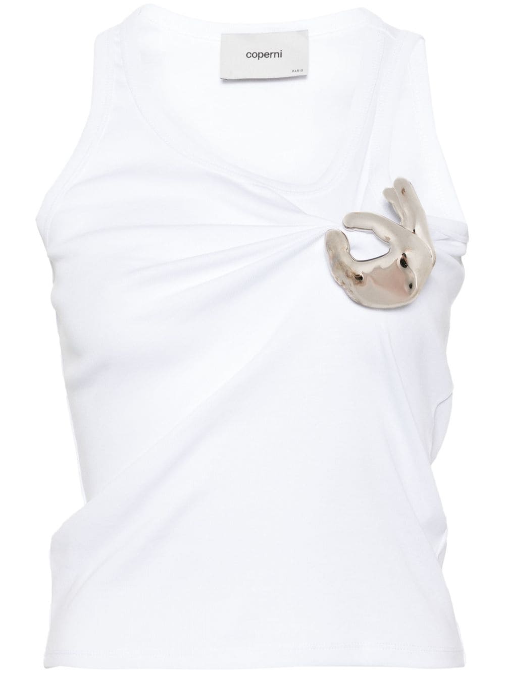 Emoji cotton tank top Highlights - White - Cotton - Jersey texture - Ribbed trim - Asymmetric neck - Sleeveless - Silver-tone brooch detail - Ruched detailing - Pull-on style Imported Composition Cotton 100% SIZE & FIT Measurement BUST 28.34 in(72 cm) LENGTH 21.65 in(55 cm) Washing instructions Machine Wash