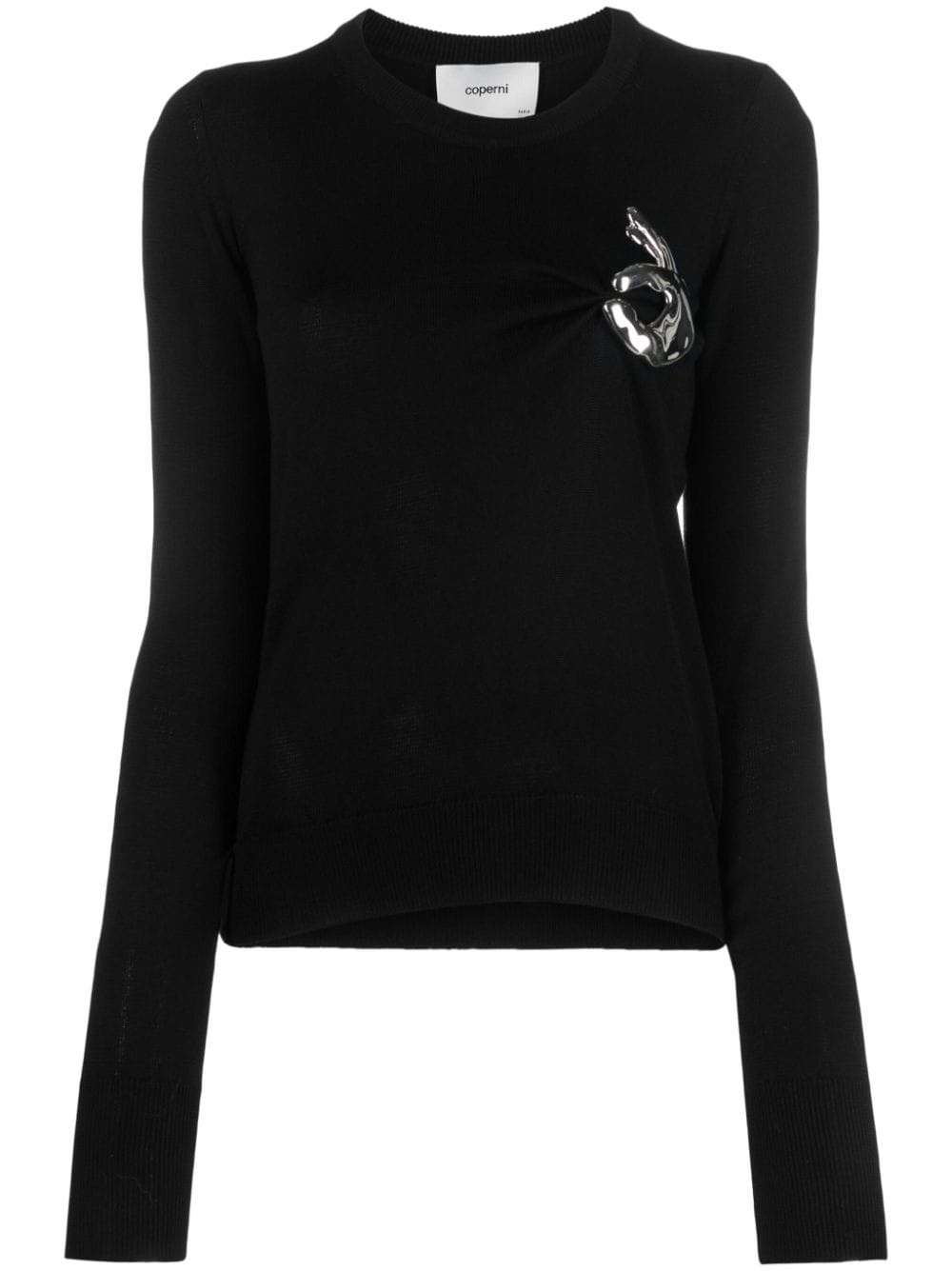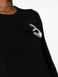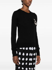 Emoji virgin wool jumper Highlights - Jet black - Virgin wool - Fine knit - Silver-tone hardware - Detachable brooch detail - Crew neck - Long sleeves - Ribbed cuffs and hem Made in Italy Composition Virgin Wool 100% SIZE & FIT Model measurements Height 5 ft 10 in(1.77 m) Bust/Chest 29.92 in(76 cm) Hips 34.25 in(87 cm) Waist 23.62 in(60 cm) FittingInformation Designed for a relaxed fit, this piece allows for comfort and movement when worn Made with a midweight knit, this piece offers some stretch This piece fits true to size – take your usual size Washing instructions Dry Clean Only