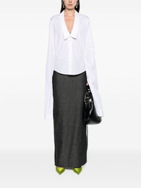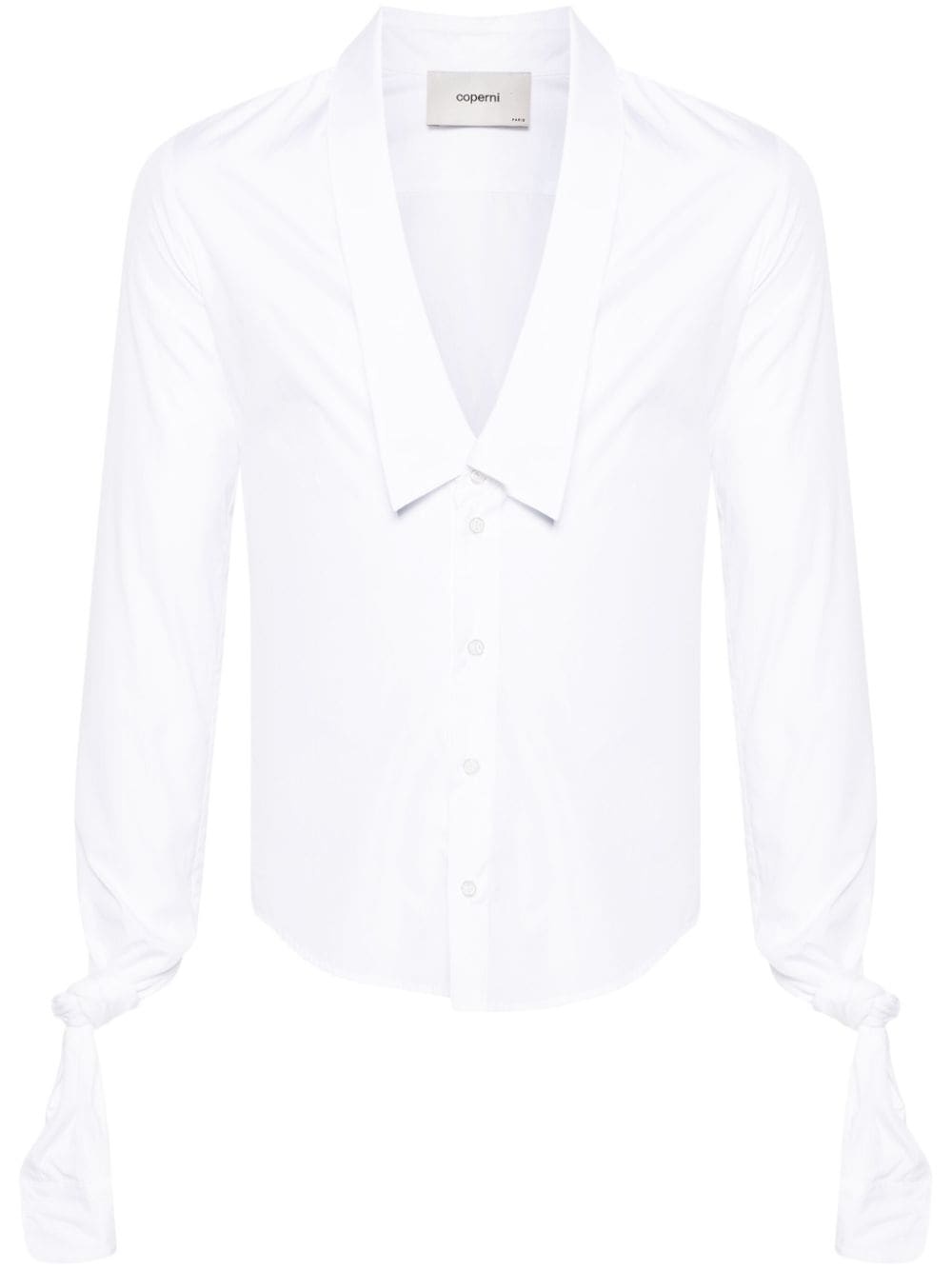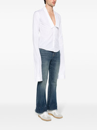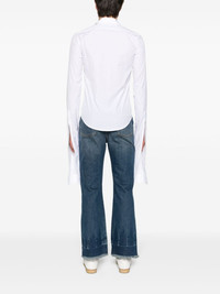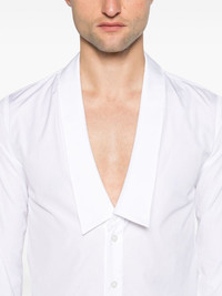 extra-long sleeves cotton shirt Highlights - White - Cotton - Poplin texture - Open collar - Plunging v-neck - Front button fastening - Extra-long sleeves - Split cuffs - Curved hem - When buying this unisex item, keep in mind that it is graded in standard men's sizing. Imported Composition Cotton 100% SIZE & FIT Model measurements Height 6 ft 2 in(1.87 m) Bust/Chest 37.79 in(96 cm) Hips 37.79 in(96 cm) Waist 30.31 in(77 cm) FittingInformation This unisex piece is designed for a slim fit whether you usually select women's or men's sizes Constructed with additional length on the sleeve Made from a midweight non-stretch fabric